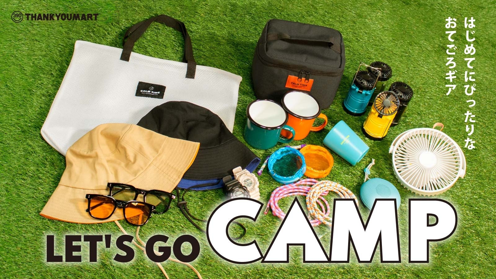 390円(税込429円)を中心としたかわいいアイテムが集まるショップ「サンキューマート」を運営するエルソニック株式会社は、これからキャンプをはじめる若者がオシャレに気軽にキャンプを楽しめるよう企画した新商品シリーズ「LET'S GO CAMP」の商品を、全国のサンキューマート店舗で4月下旬より入荷順次販売開始いたします。