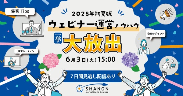 株式会社シャノン(本社:東京都港区、代表取締役CEO:山﨑 浩史)は、6月3日(火) に「"ここだけは外せない"ウェビナー運営のノウハウ」をご紹介するセミナーを開催いたします。