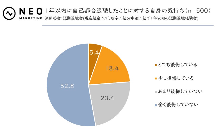 短期退職者に対し、1年以内に自己都合退職したことをどう思っているかお聞きしました。