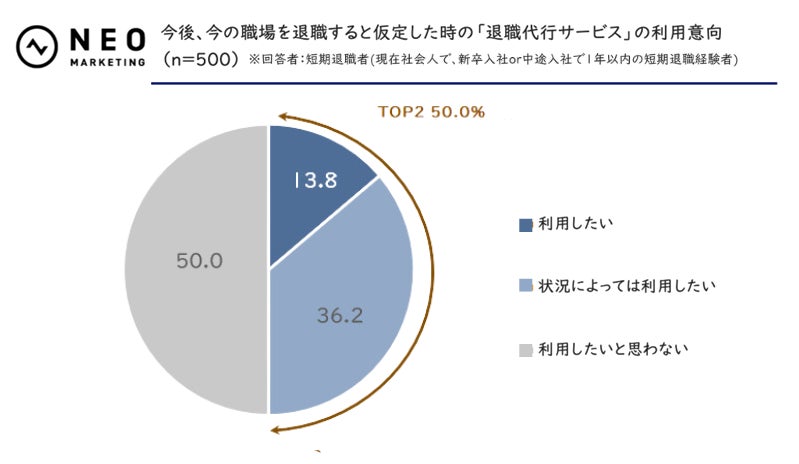 ■今後、今の職場を退職すると仮定した時の「退職代行サービス」の利用意向(n= 500)