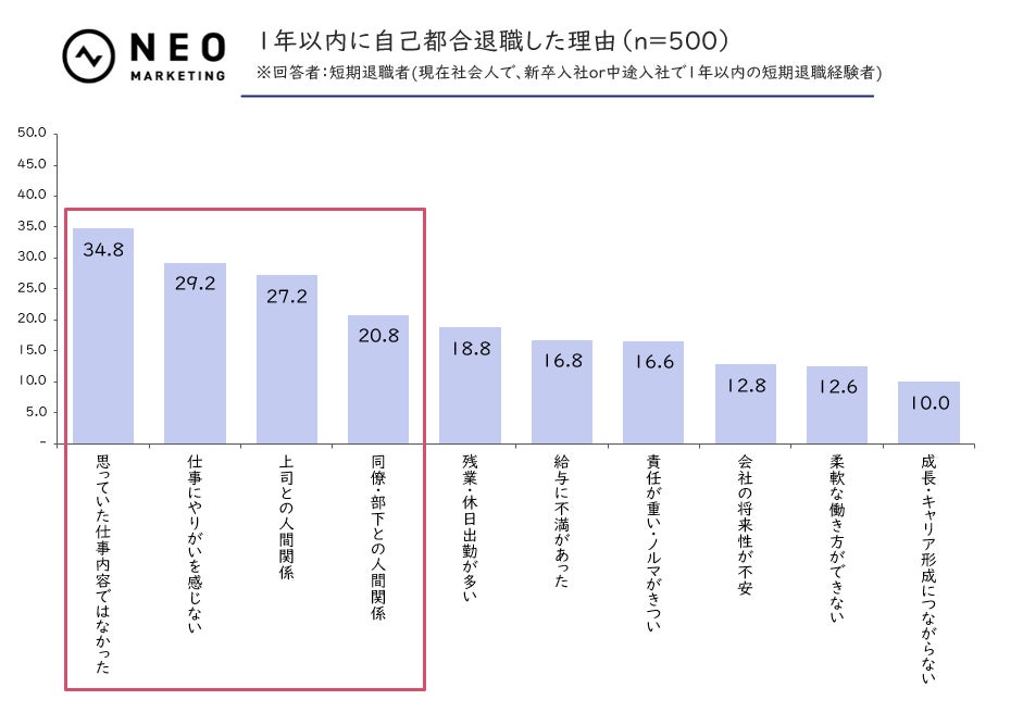 短期退職者に、1年以内に自己都合で退職した理由をお聞きしました。