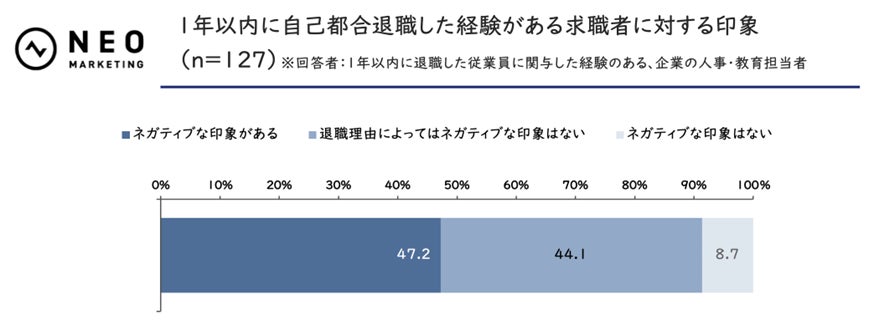 さらに人事担当者には、1年以内に自己都合退職した経験がある求職者への印象もお聞きしました。