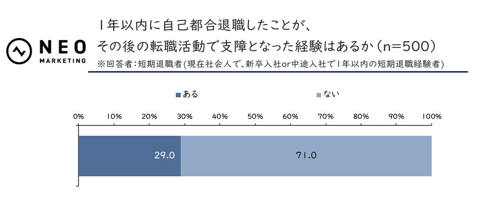 短期退職者の29.0%が、その後の転職に支障をきたした経験があるという結果に。