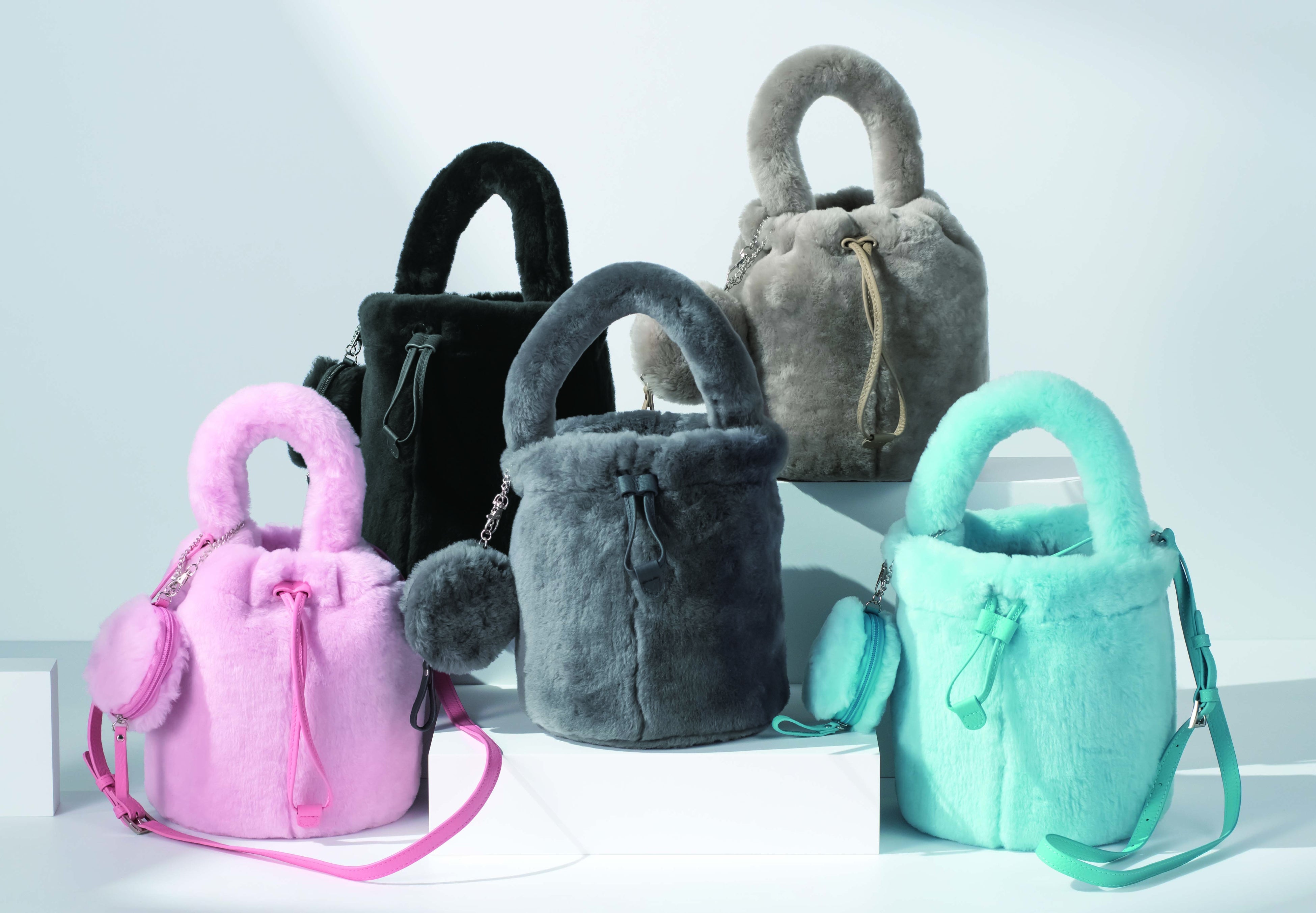上質なムートンを使用した巾着型のバッグが登場。ハンドルにもムートンを使用し、もこもこと可愛らしい