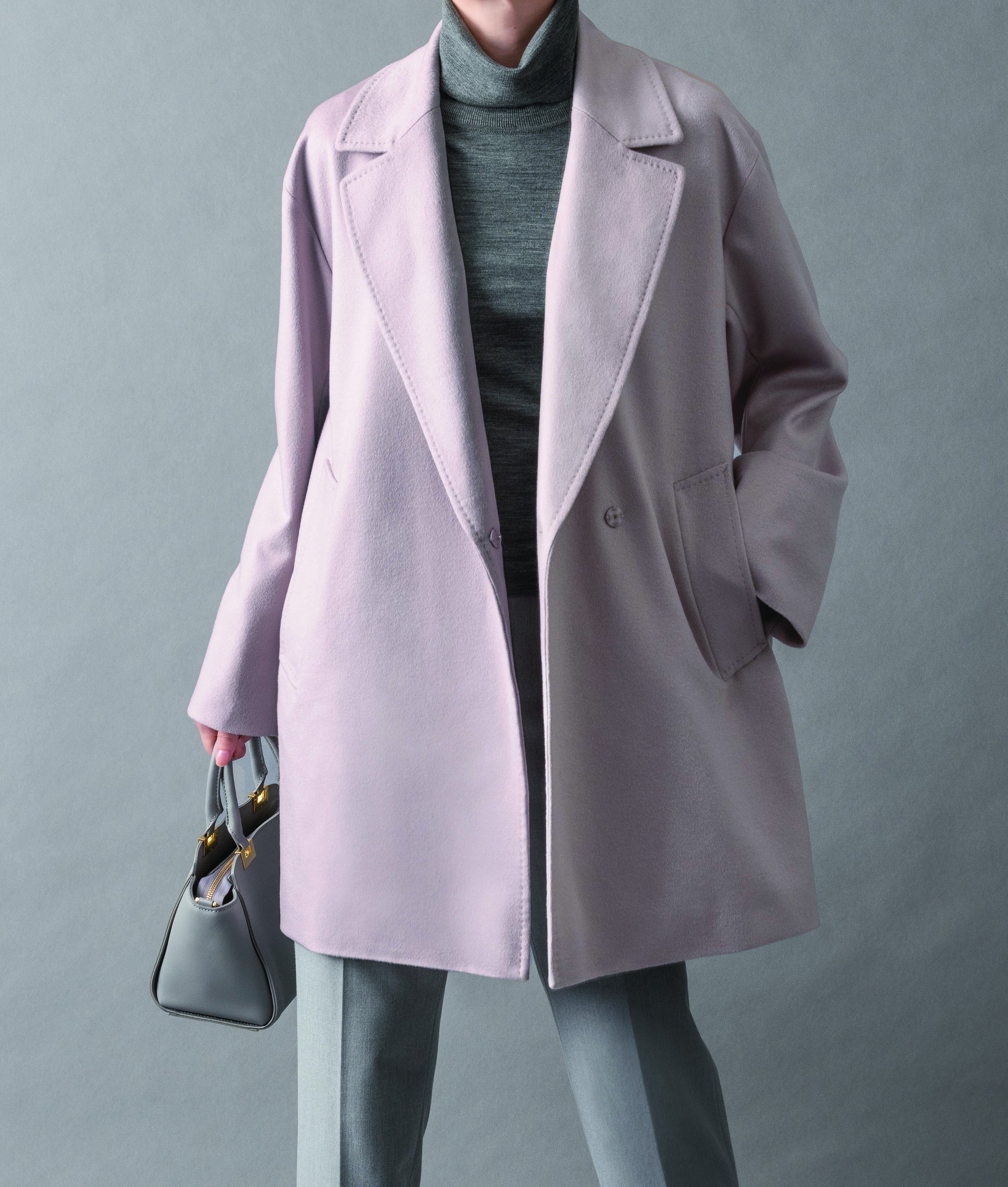 女性を美しく魅せるカシミヤ100%のミドル丈コートを紹介します。