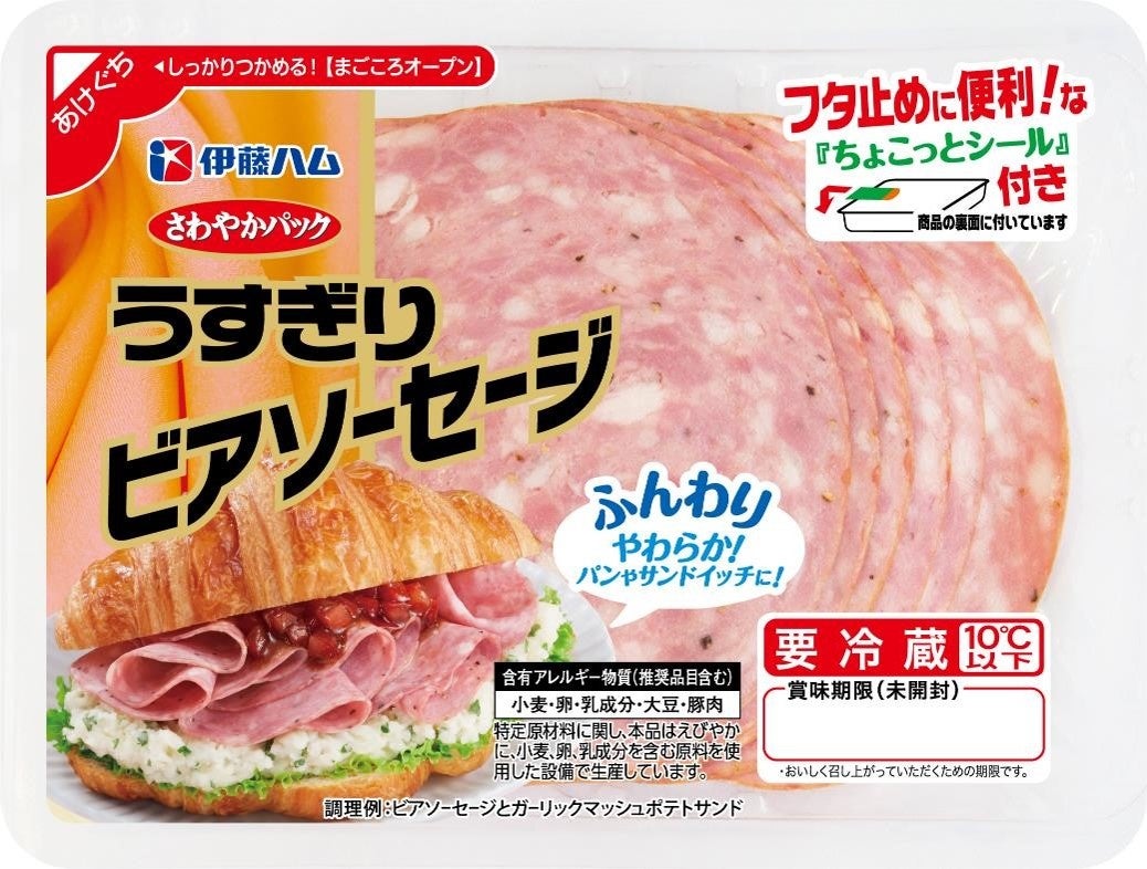 伊藤ハム株式会社は、うすぎりが特長の「さわやかパック」シリーズから、サンドイッチなどパンにはさみやすい「うすぎり ビアソーセージ」を発売します。