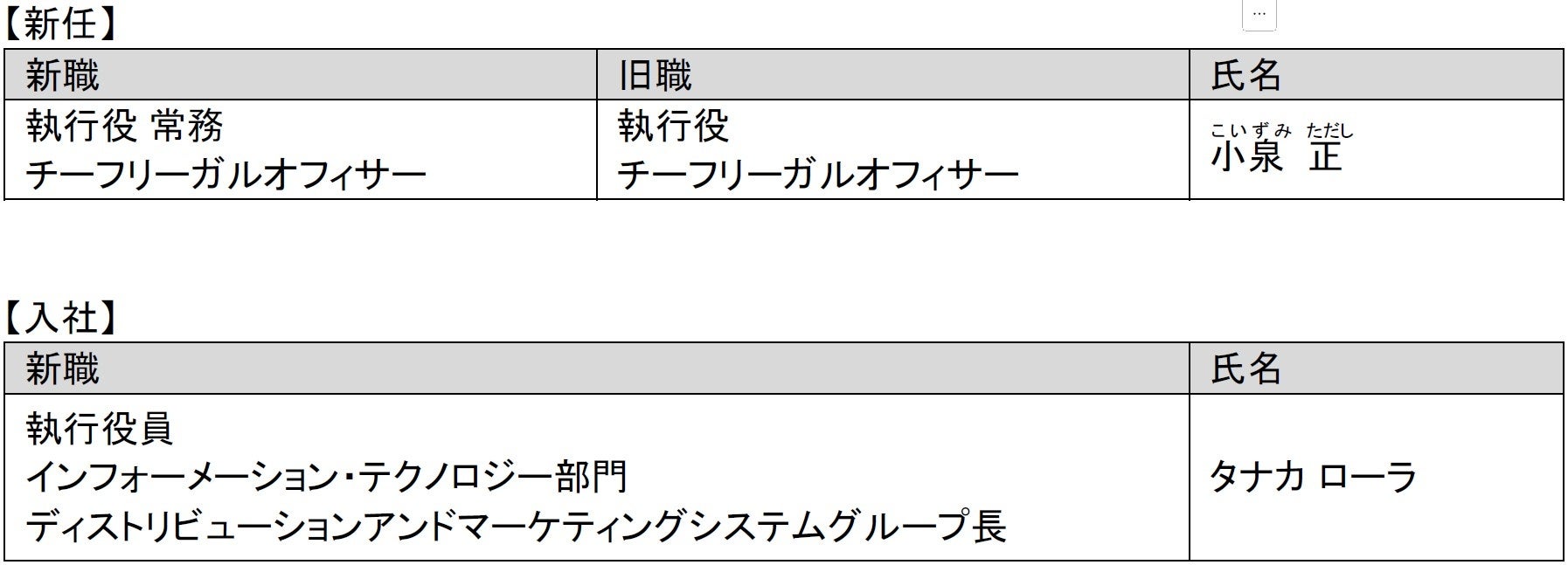 人事異動(役員)のお知らせ
