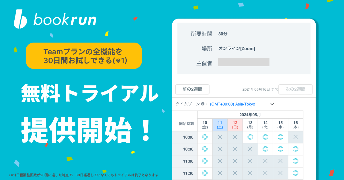 日程調整ツール『bookrun』が無料トライアル提供開始のお知らせ