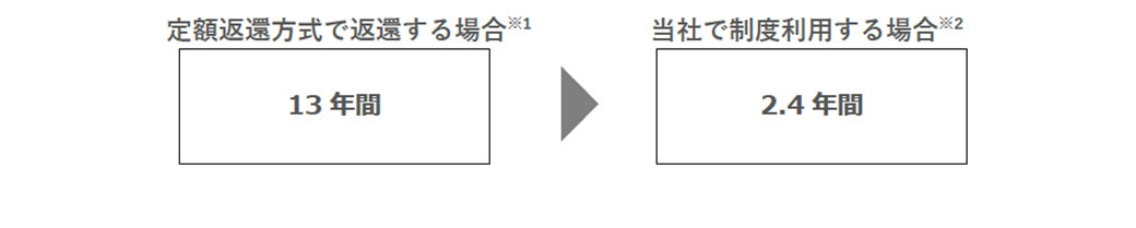 ※2 貸与総額144万円 ÷ 毎月の返還額5万円(年間60万円) = 2.4年間で返還