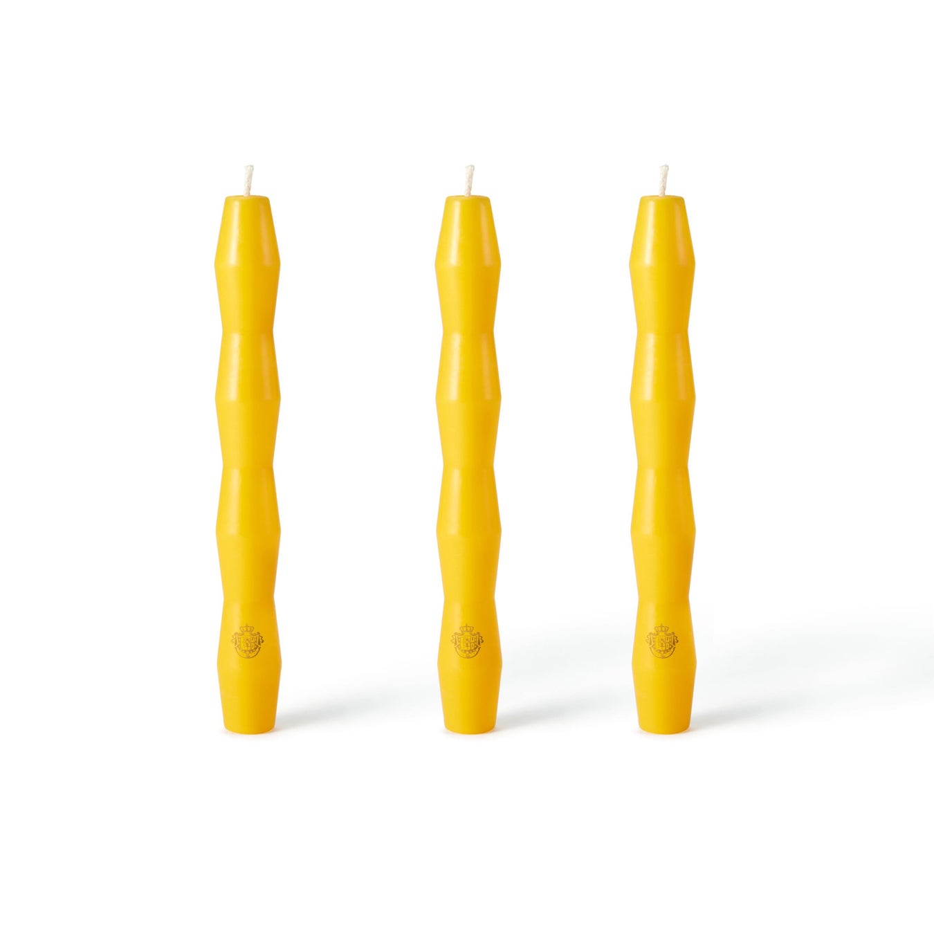 このアクセサリーコレクションには、あらゆるインテリアに遊び心を添える2つのモジュール式キャンドルホルダー、コロニア タッザ ベース トーテム(200Gキャンドル専用)とコロニア タッツィーナ モジュール トーテム(新発売の無香キャンドル専用)も含まれています。どちらも色調を合わせたモジュールと組み合わせてカスタマイズすることができます。さらに、ブランドカラーのイエローに金の紋章をあしらったテーブルデコレーション用の無香キャンドルが3本セットになった、コロニア ソット ソプラ キャンドルセットもご用意しています。