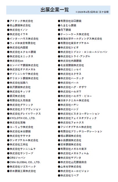 初開催ながら、すでに多くの有力企業・ブランドが参画を決定しており、眼鏡販売店・バイヤーの皆様にとって見応えのある、実り多い商談の場となることが眼鏡業界の皆様より期待されています。