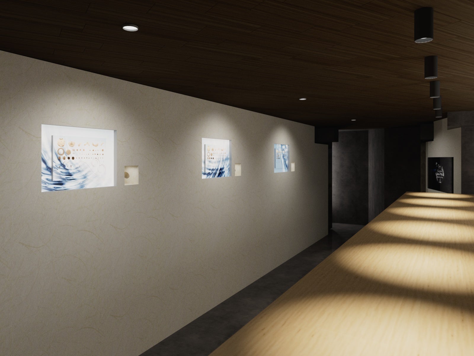 触覚エリアは、光と陰の演出による空間にて、グランドセイコーの腕時計を実際に装着していただくことができます。月のように堂々と輝くグランドセイコーのロゴを背に撮影ができるフォトスポットのご用意もございます。
