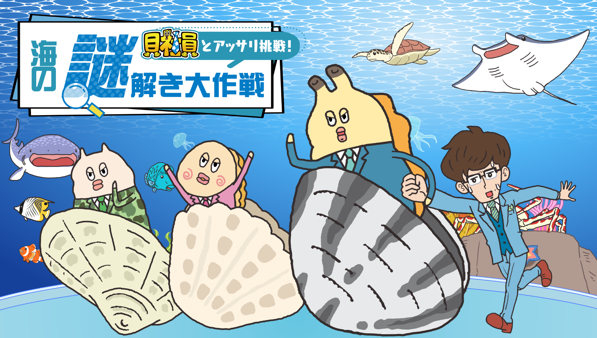 【ストーリー】ユニークな個性が人気の「貝社員」たちは、ある日水族館で開催されている謎解きイベントに参加する。“海の未来を守る”ためのたくさんのミッションが用意されたこの謎解きイベントで、すべての謎を解き明かし、みごと海の救世主となることはできるだろうか!?