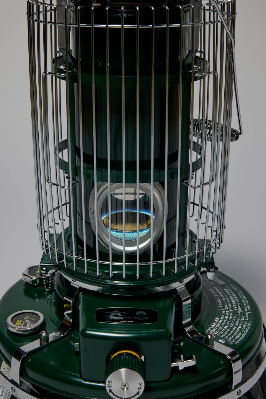 また持ち運びやすく扱いやすいものにしたいという想いから誕生した『ポータブル ガス ストーブ』からも“深緑色”が別注カラーとして登場。『ブルーフレームヒーター』と同様に〈アラジン〉と〈ビームス ジャパン〉のロゴをプリントしたオリジナル収納カバーも付属します。