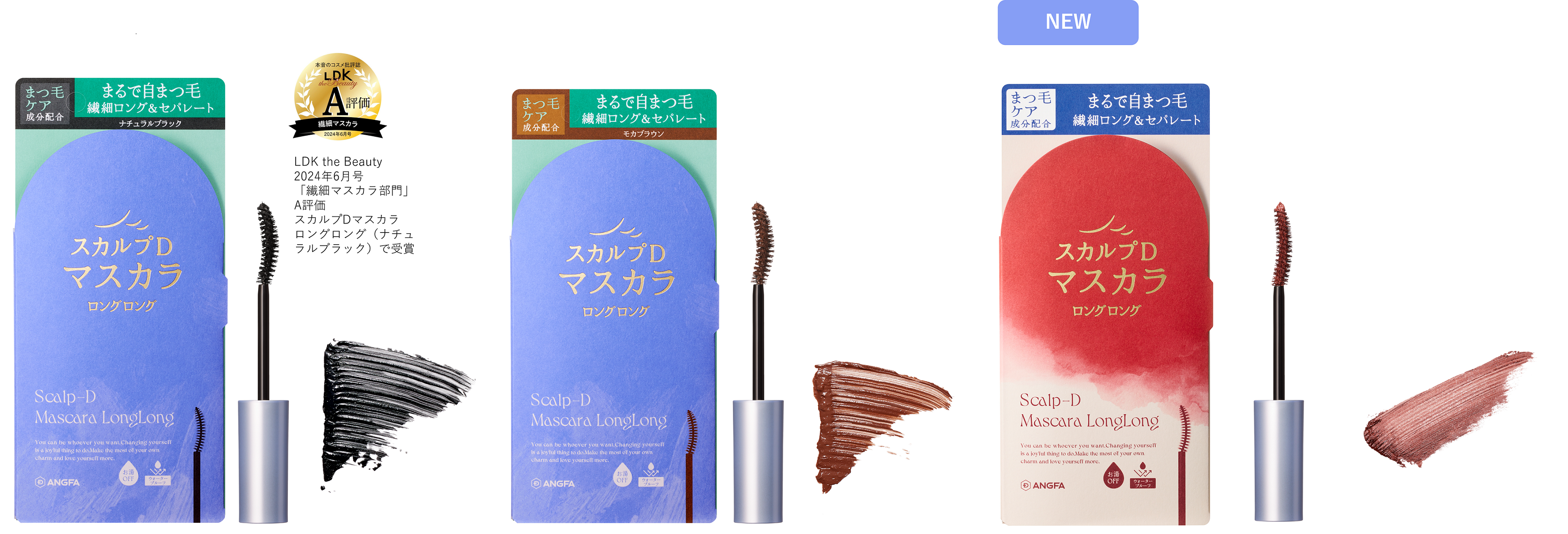 「スカルプDまつ毛美容液」シリーズは、2024年3月に“ずっと美しいまつ毛”を叶えるブランドとして、まつ毛美容液・眉毛美容液・マスカラ・アイライナーを7年ぶりにリニューアルいたしました。シリーズ内の「スカルプDマスカラ」は、ロングタイプ2色(ナチュラルブラック/モカブラウン)・ボリュームタイプ1色(ディープブラック)の3アイテムを展開しています。メイクしながらまつ毛のダメージケアもでき、ウォータープルーフ・お湯落ちという使いやすい設計をご好評いただいております。