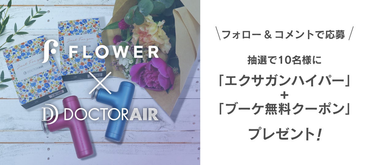 全国約4,000店で取り扱われているトータルボディケアブランド『ドクターエア』では、「かわいいが届くお花便」で話題の『FLOWER』とのコラボ企画で「こころもからだもリフレッシュ」をテーマに大人気のボディケアツール【エクサガン ハイパー】と『FLOWER』のブーケ無料クーポンが抽選で当たるキャンペーンを公式Instagramアカウントにて4月17日(月)~ 5月14日(日) まで実施いたします。