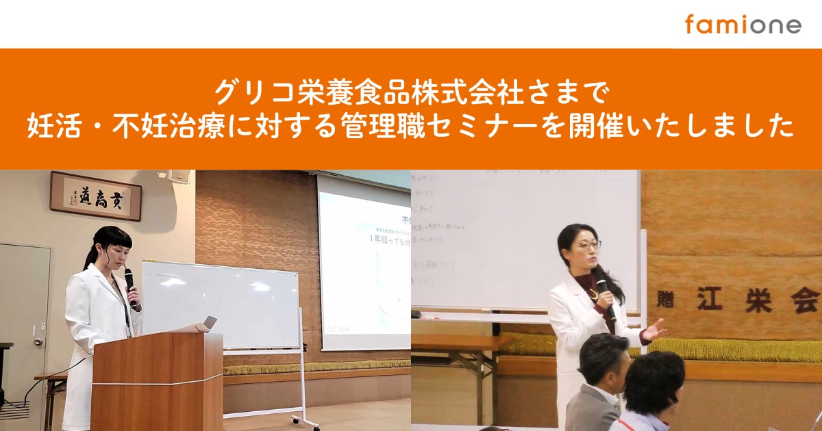 「子どもを願うすべての人によりそい 幸せな人生を歩める社会をつくる」をビジョンに掲げ、法人の従業員向け福利厚生や自治体の住民向け支援を行うヘルスケアサポートサービス「ファミワン」 https://famione.com/benefit/ などを展開する株式会社ファミワン(本社:東京都渋谷区、代表取締役:石川勇介)は、グリコ栄養食品株式会社の管理職向けのハイブリッドセミナー、「プレ子育て支援 妊活・不妊治療と仕事の両立」にて、ファミワンの看護師・生殖医療相談士の濱田と公認心理師・臨床心理士の戸田が登壇しました。