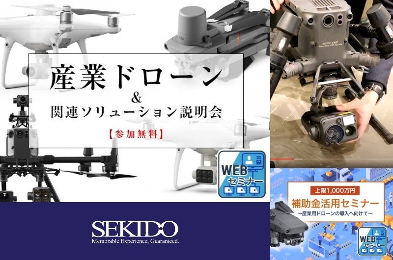 日本初のDJI正規販売代理店である株式会社セキド(本社:東京都港区、代表取締役:⼤下貴之)では、2022年11月24日(木)13時より「【WEBセミナー】産業ドローン&関連ソリューション無料説明会」を開催いたします。ドローンと搭載されるカメラや散布装置などの性能が向上し、業務効率改善や安全を目的として調査点検から測量、防災、農薬散布など様々な現場への導入が進む産業用ドローンについて、各製品の機能や特徴を事例を交えてわかりやすくご紹介いたします。