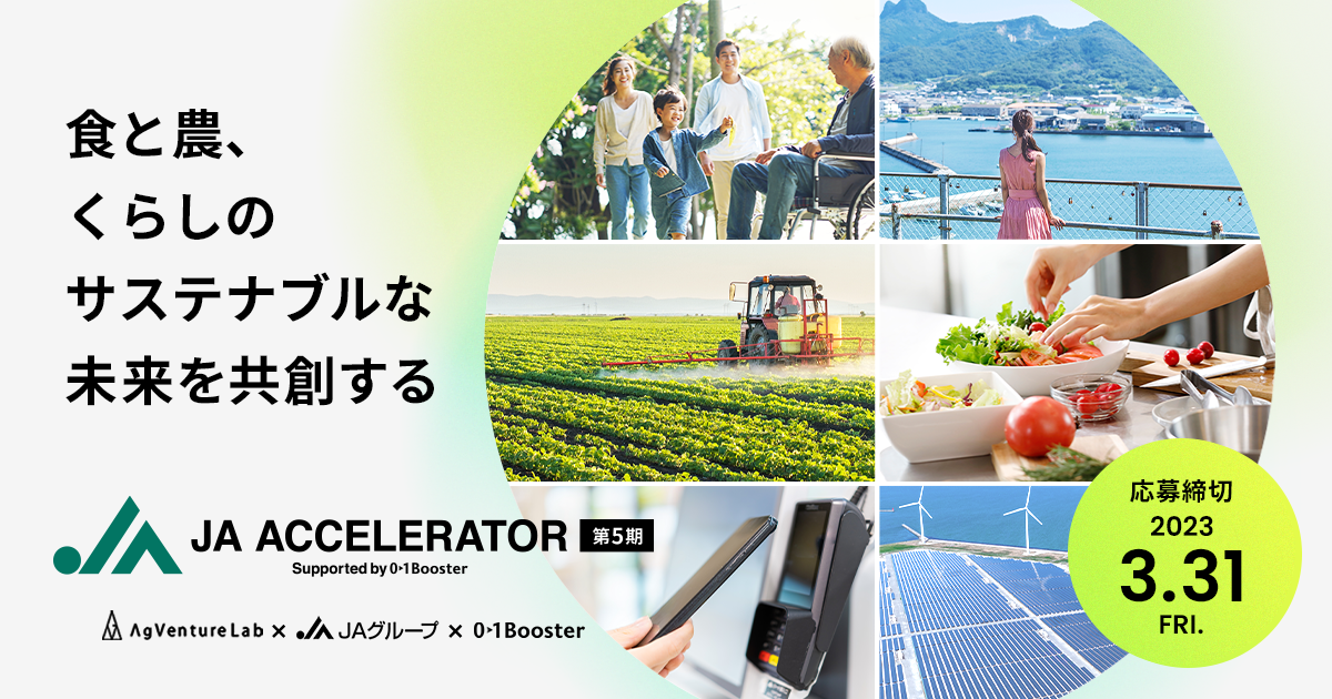 AgVenture Lab×JAグループ×01Boosterによるオープンイノベーションプログラム「JAアクセラレーター第5期」1月31日(火)募集開始!