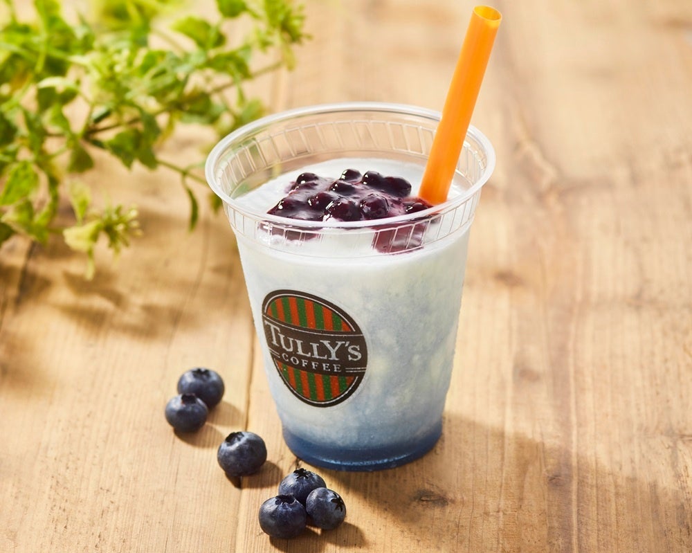 「サムシングブルー」とは、結婚式のジンクスとしても知られる「幸せを願う青いもの」。タリーズコーヒーのドリンクを通じて、“幸せなひととき”を過ごしていただきたいという想いを込めて、「幸せを呼ぶブルー(Something blue)」をテーマにしたフローズンドリンクを発売します。鮮やかなブルーが印象的なブルーベリーフレーバーと、まろやかで甘酸っぱいヨーグルトのフローズンが絶妙にマッチする、この時季にぴったりな味わいに仕上げました。美しいブルーを基調とした、マーブル模様の見た目と爽やかな味わいで、癒しのカフェタイムをお届けします。