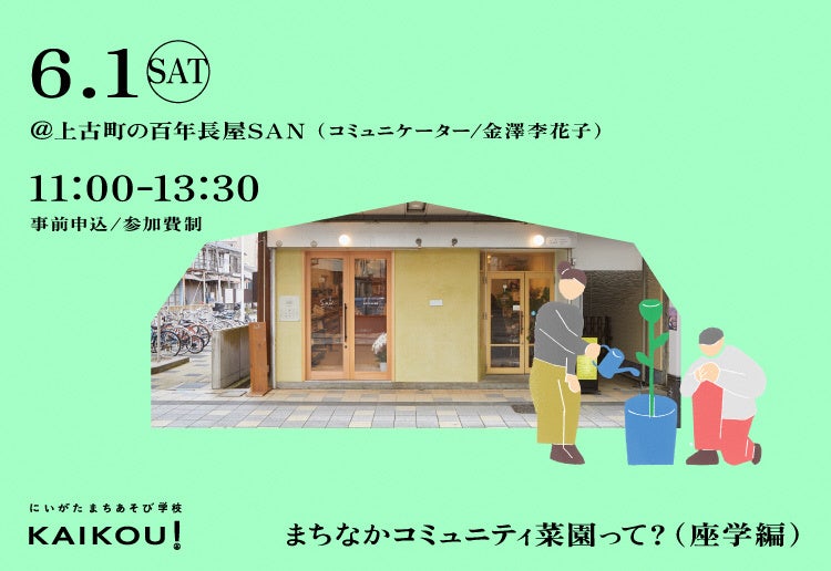 講座のスタートは、6月1日から。第1回の講座テーマは「まちなかコミュニティ菜園って?」。3月までに14回の講座を開催予定です。