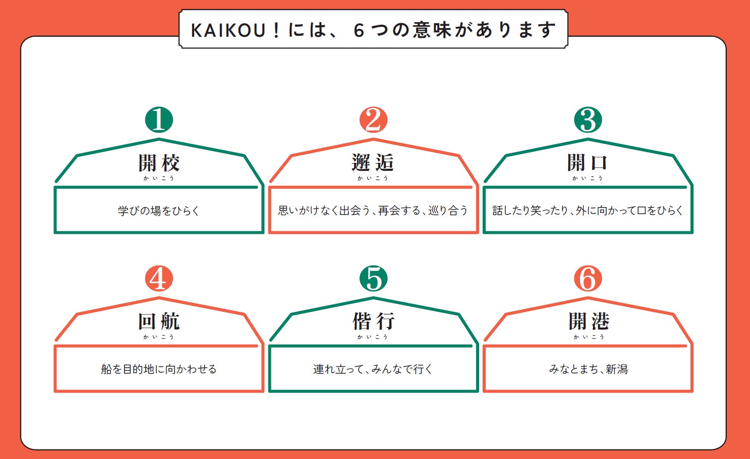 「KAIKOU!」には、6つの意味があります。