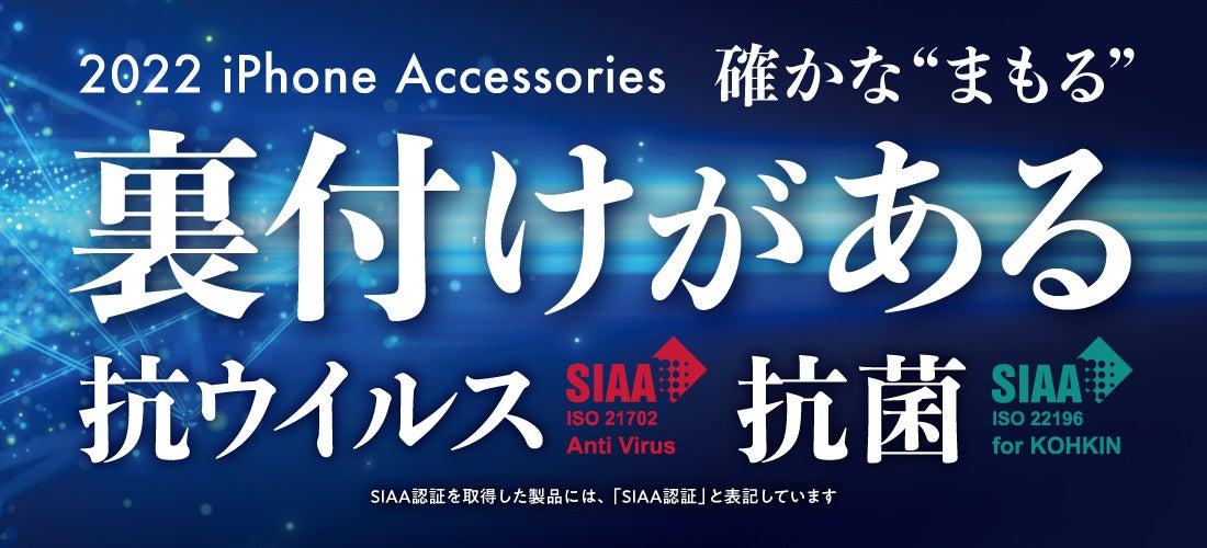 SoftBank SELECTIONでは、「iPhone 14 シリーズ」に対応する、抗ウイルス・抗菌加工※2のケースやディスプレイの保護ガラス・フィルムの多くの製品において、抗菌製品技術協議会が制定した“SIAAマーク認証”※1を取得し、抗ウイルス・抗菌加工※2に対する確かな認証を明示しています。