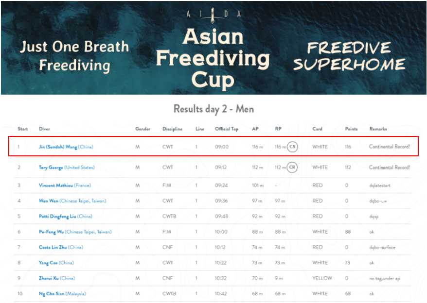● アジアフリーダイビングカップの元チャンピオンであるSendoh Wang (中国) は、その卓越した功績とダイビングへの献身的な姿勢で有名です