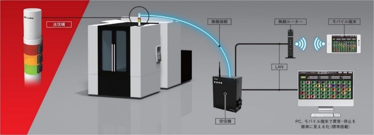 設備の稼働状況をワイヤレスで簡単に見える化し、改善ポイントを把握して生産性向上をサポート。