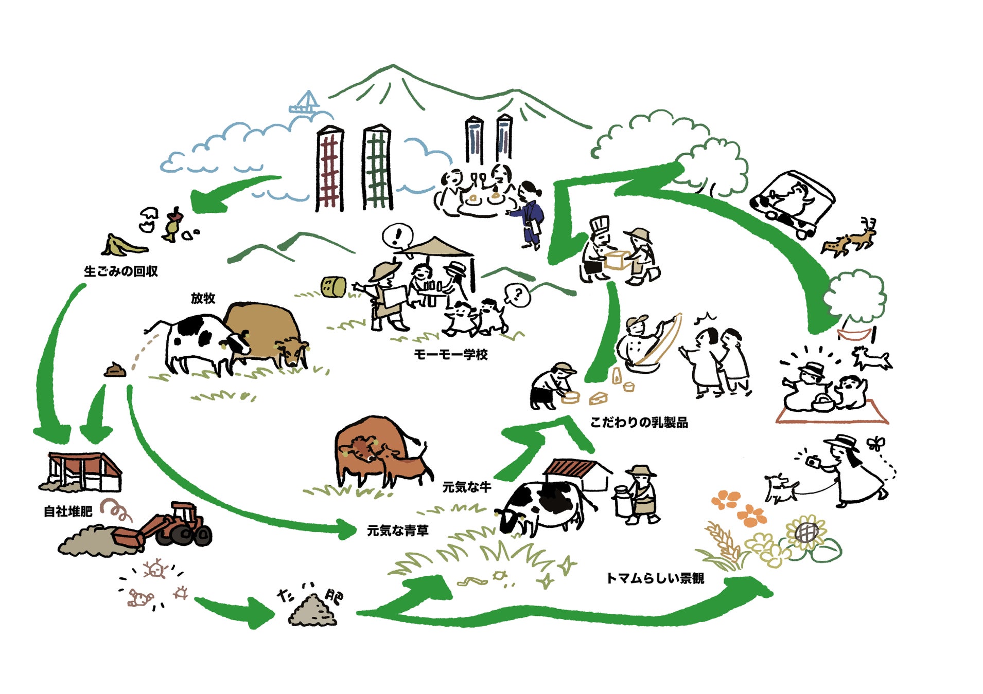 「美しい原風景に戻す」「自然に近い環境で乳牛を飼育」「豊かな自然の恵みを届ける」「酪農や牛について伝える」の4つの取り組みを実施しています。