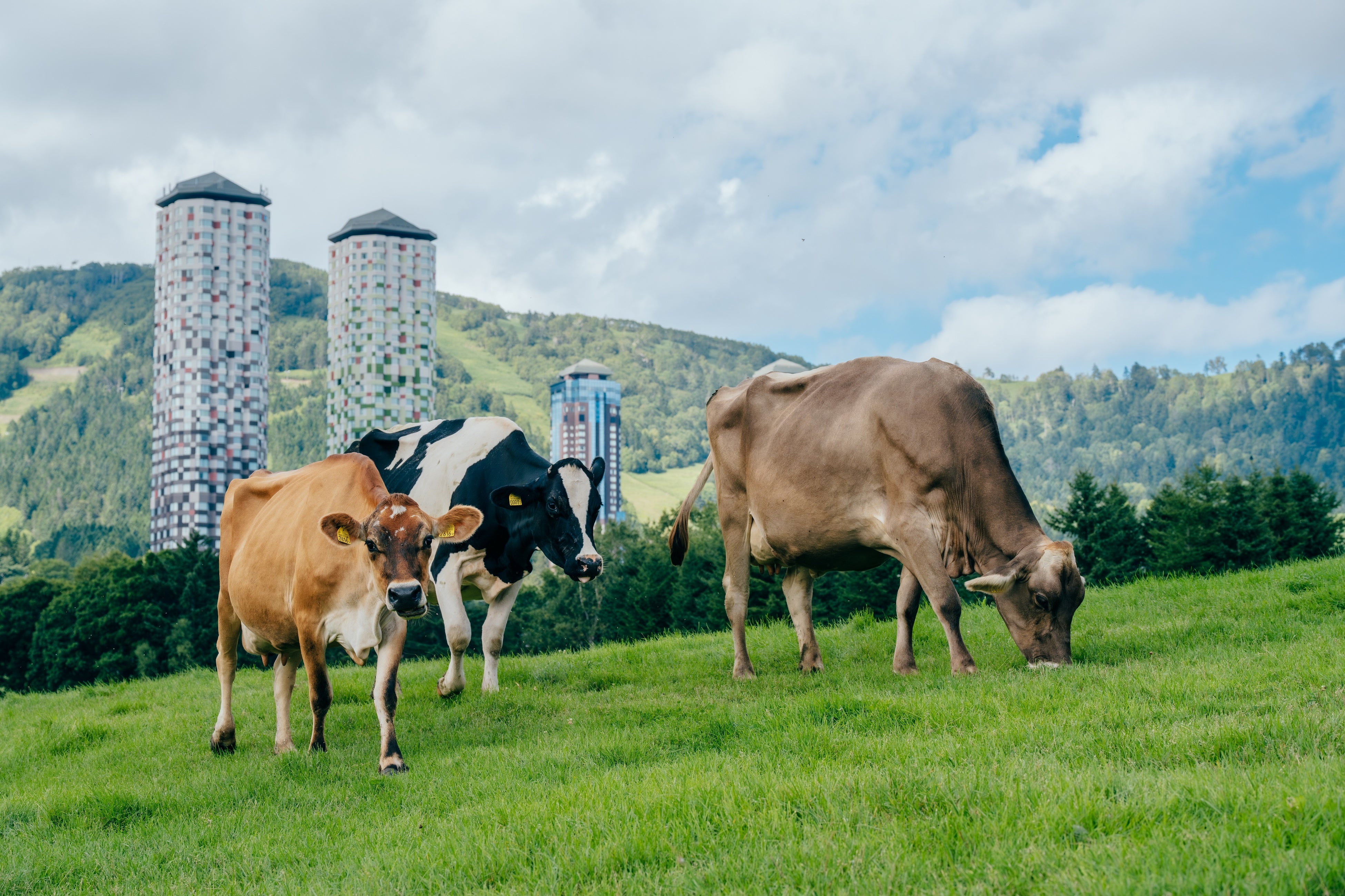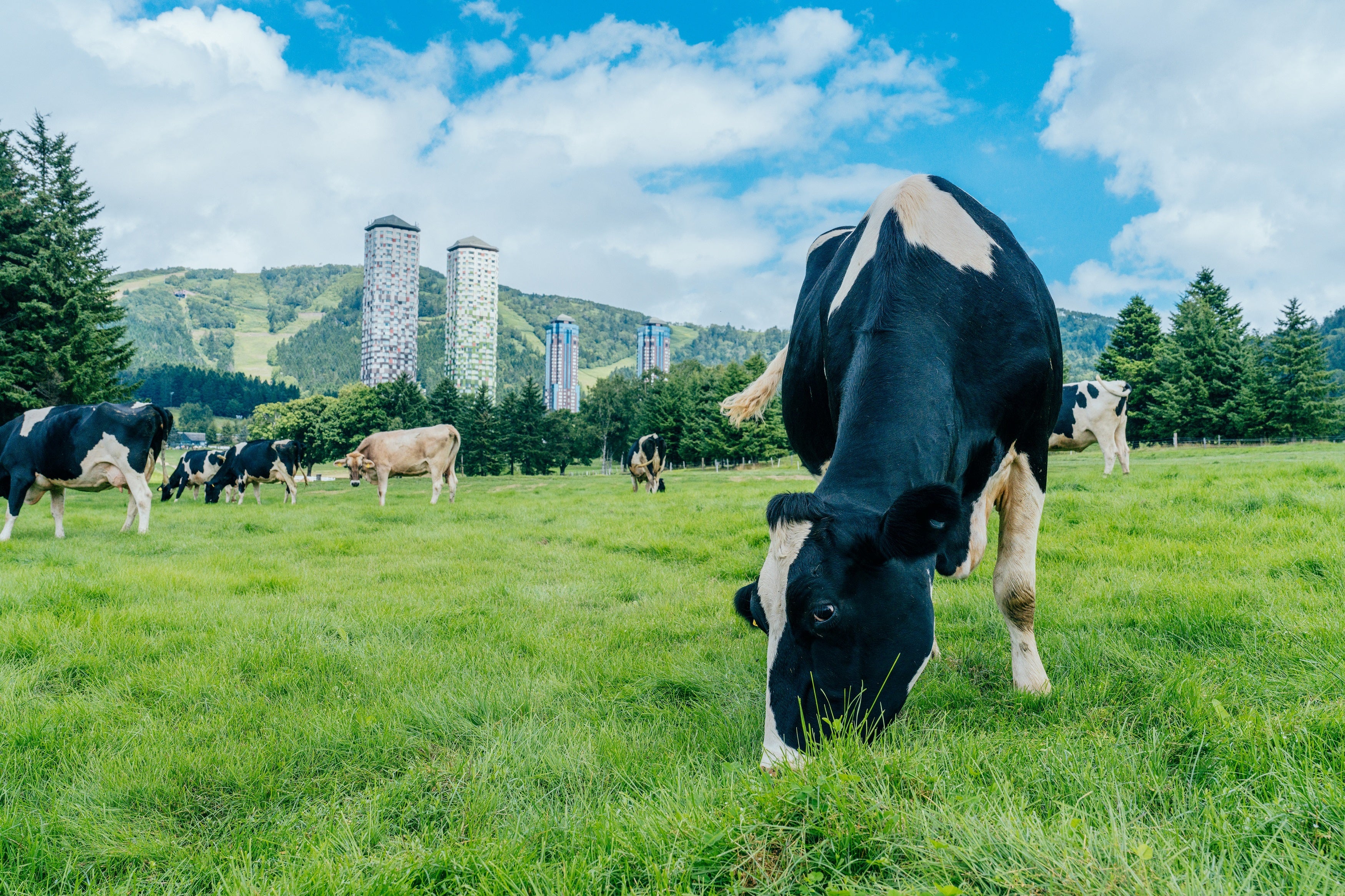 当リゾートが位置するエリアは、リゾート開発前には約700頭の牛が飼われ、農業が営まれていたと言われています。「農業から生まれる美しい景観は旅をする人に癒しを与え、そこで生産される農作物は旅を豊かにする」という理念のもと、2016 年にゴルフ事業を廃止し、2017年からゴルフ場だった約100ヘクタールの敷地を「ファームエリア」と名付け、豊かな土と美しい景観づくりに取り組んできました。現在、約30頭の乳牛を飼育しており、春から秋にかけて放牧しています。