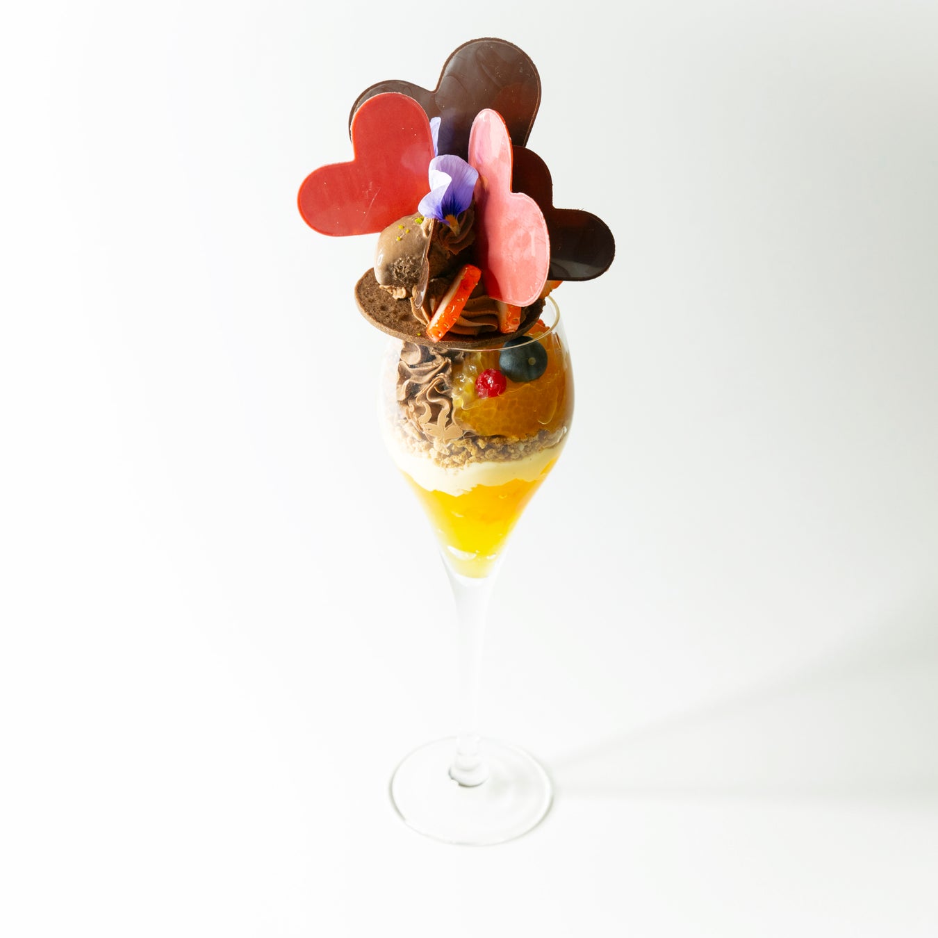バレンタインシーズン限定で登場する、苺と柑橘、そしてビターチョコレートが織りなす華やかなショコラパフェ。