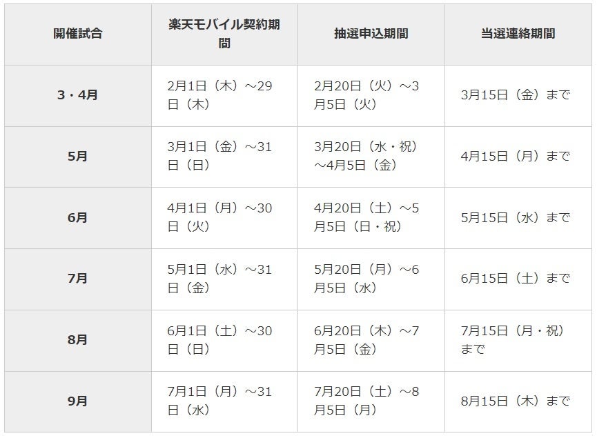 ■特典:(当選の方のみ)楽天モバイルシート 観戦チケット