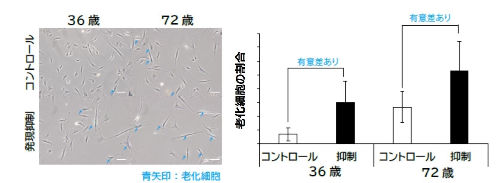 EFEMP2 はフィブリン-4と呼ばれる、コラーゲンやエラスチンの形成に重要なタンパク質をつくる遺伝子ですが、老化細胞との直接的な関わりは今回が初めての報告となります。