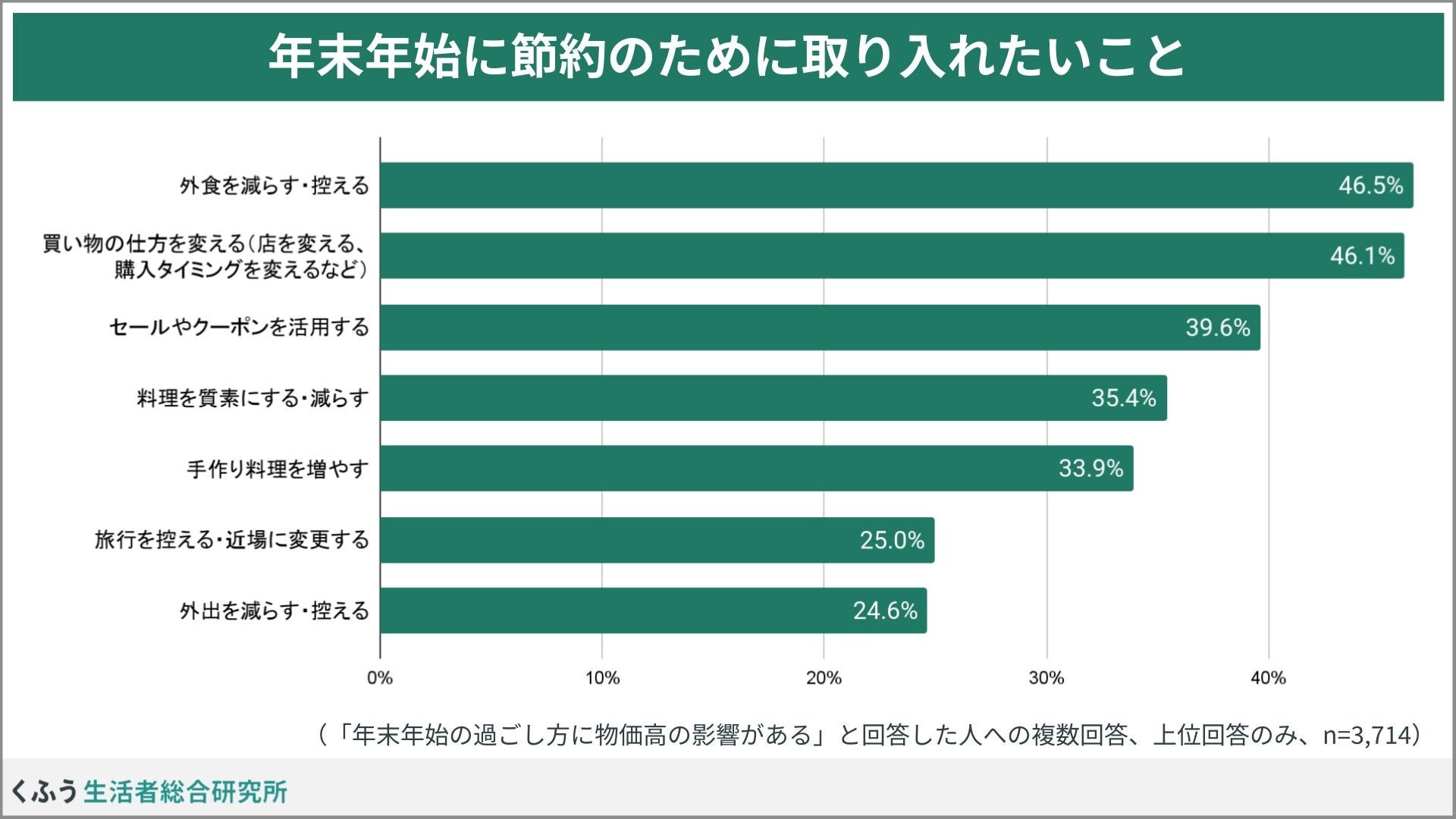 2025年〜2026年の年末年始は"奇跡の9連休"でも節約の傾向に。約7割が年末年始の過ごし方に「物価高の影響がある」、その約半数が「外食を控える」「買い物を工夫する」と回答