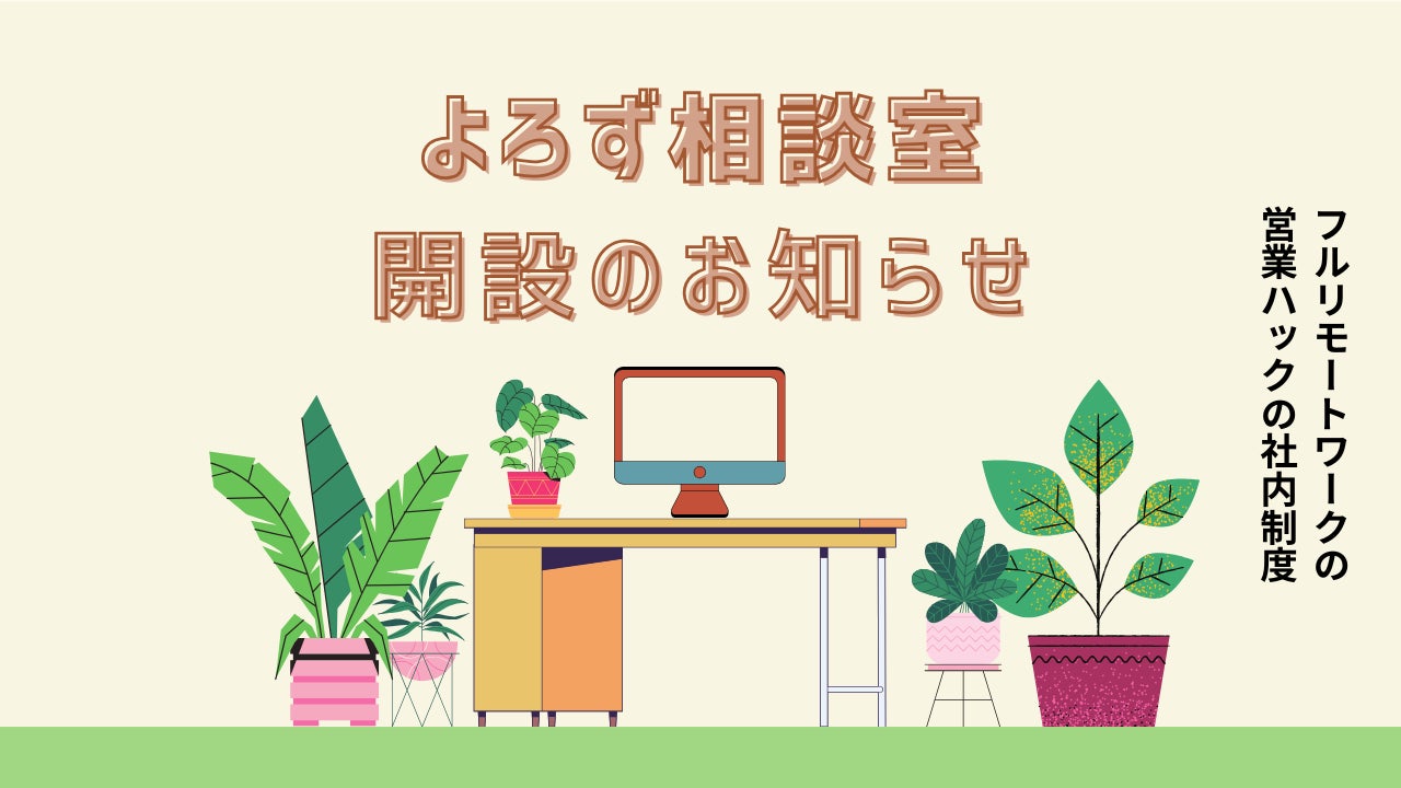 全従業員フルリモートで営業支援を行う株式会社営業ハック(本社:東京都豊島区・代表:笹田裕嗣)は、福利厚生の一環として社内に「よろず相談室」を開設したことをお知らせします。