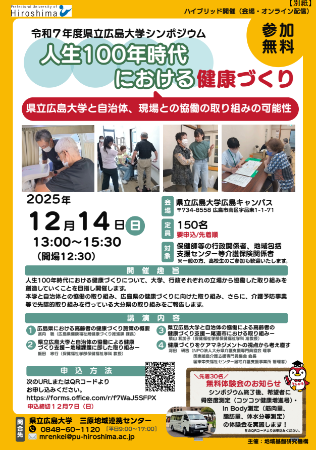令和7 年度 県立広島大学シンポジウム人生100年時代における健康づくり-県立広島大学と自治体、現場との協働の取り組みの可能性-
