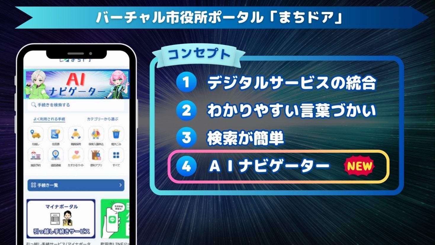 バーチャル市役所ポータル「まちドア」の特徴