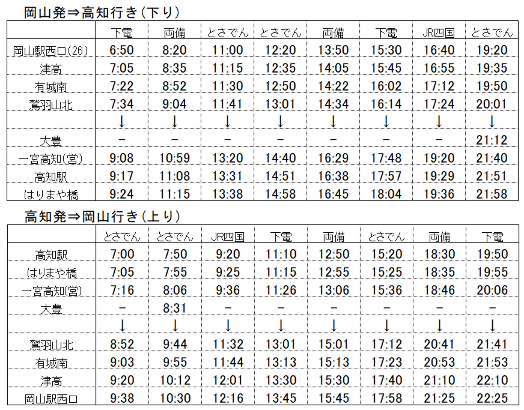 (ジェイアール四国バス株式会社、下津井電鉄株式会社、とさでん交通株式会社と共同運行)