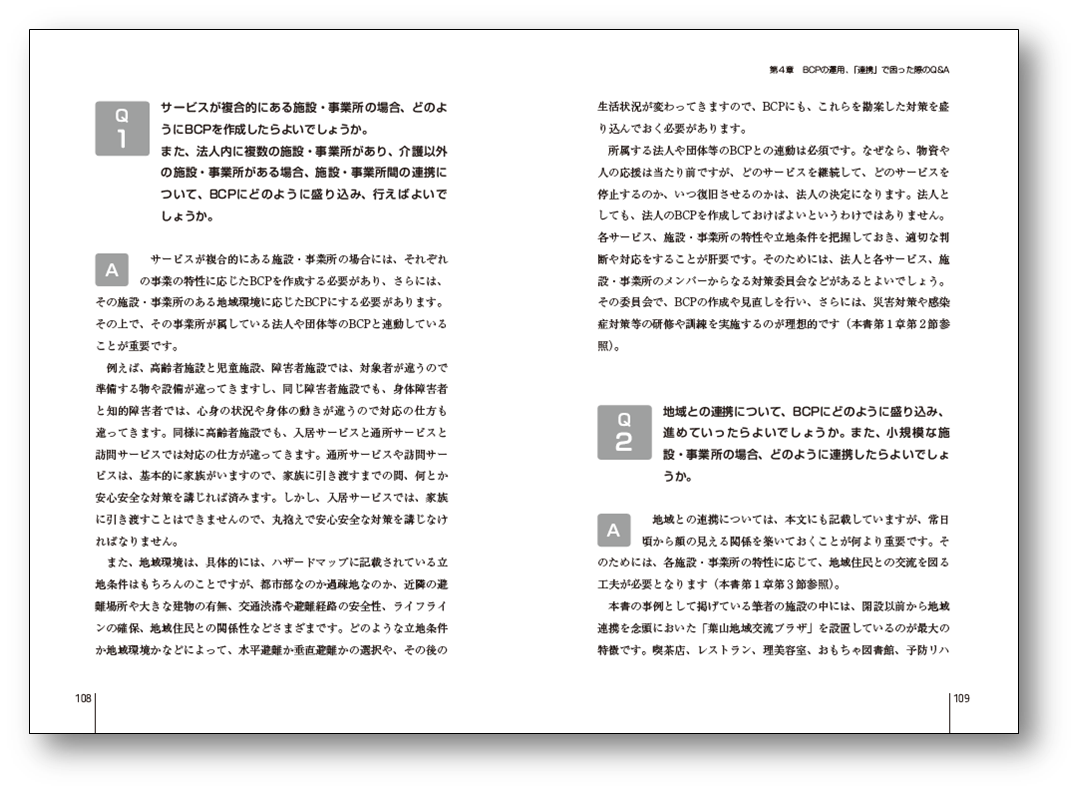 介護施設・事業所のBCP(業務継続計画)について、作成のポイントだけでなく、地域や自治体、他の施設・事業所、団体等との「連携」を活用したBCPの運用方法を「事例」や「Q&A」を交えて解説!
