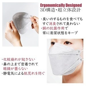 そんな魅力を秘めた抗菌力のある銅繊維を用い、口紅などを塗る女性にも優しい人体工学的な3D設計の立体型マスクです。