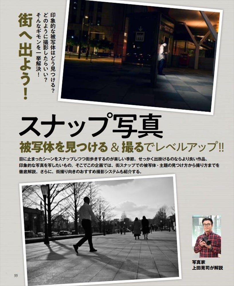 そこで、街スナップでの被写体・主題の見つけ方から撮り方までを徹底解説。写真家の上田晃司さんと実際に街へ繰り出して撮影してきました。さらに、街スナップが楽しくなるオススメ撮影システムも紹介します。