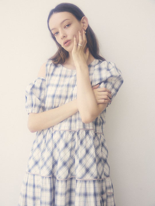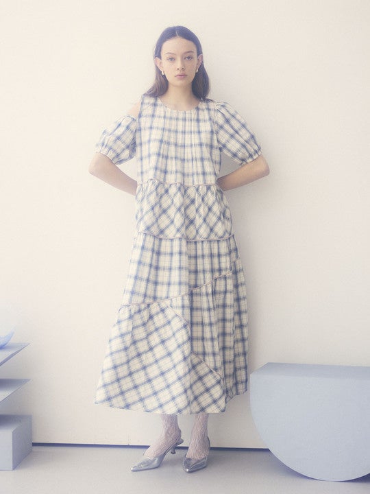 Privève / THE CHECK ASYMMETRY SLEEVE TIRED DRESS