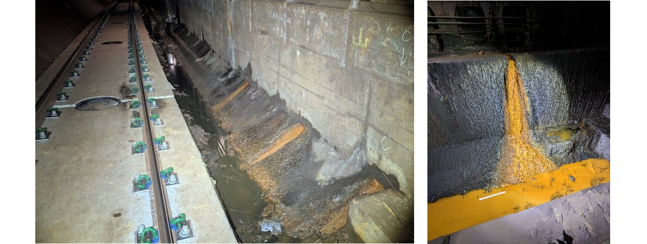 地下トンネル内に発生する鉄バクテリア由来のサビ色汚泥を一掃