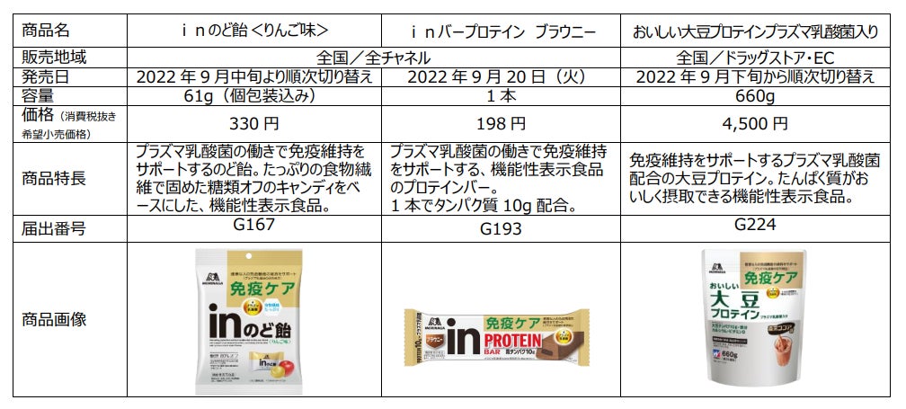 キリンホールディングス株式会社(社長 磯崎功典、以下キリン)と、森永製菓株式会社(社長 太田 栄二郎、以下森永製菓)は、キリングループの独自素材「プラズマ乳酸菌」を配合した免疫機能の機能性表示食品「inのど飴<りんご味>」「inバープロテイン ブラウニー」「おいしい大豆プロテインプラズマ乳酸菌入り」「免疫ケア プラズマ乳酸菌チョコレート」「免疫ケア プラズマ乳酸菌ココア」の5商品のパッケージデザインを、8月~9月にかけて順次リニューアルします。