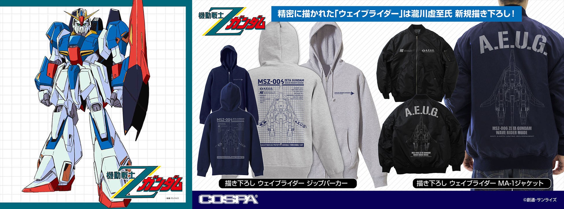 ◆『機動戦士Zガンダム』描き下ろし ウェイブライダー ジップパーカー(税込6,600円)/MA-1ジャケット(税込13,200円)