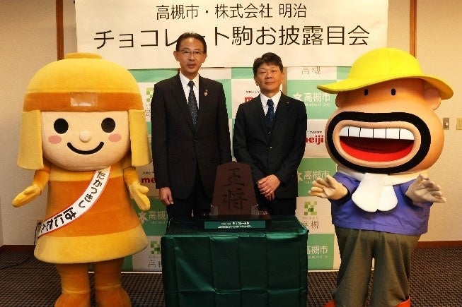将棋のまち高槻で株式会社明治がチョコレート製の巨大駒をお披露目