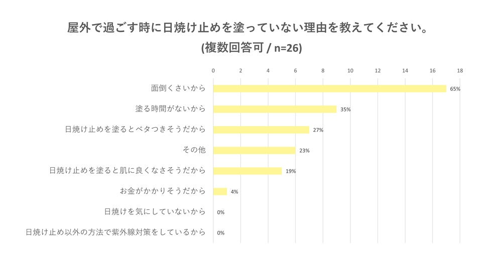 一方で、日焼け止めを日頃塗っていないという方は、どのような理由があるのでしょうか?