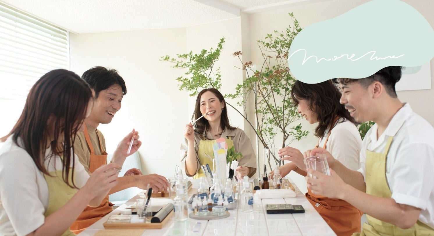 化粧品開発の知見を活かして厳選された材料や、地域の恵みを生かし、環境配慮された和精油を用いたブレンド精油を用意。『more more』独自のDIYレシピによって、スキンケアからルームミストまで幅広いセルフケアアイテムをつくることができます。料理のようにレシピをシェアし合えば、インスピレーションも広がります。