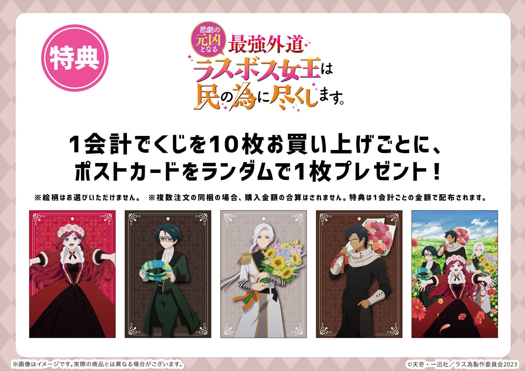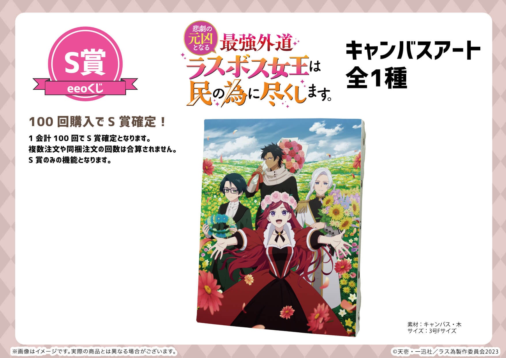 TVアニメ『悲劇の元凶となる最強外道ラスボス女王は民の為に尽くします。』(通称『ラス為』)のオンラインくじ「eeoくじ」が9月15日からeeo Store(通販)にて期間限定で販売決定!